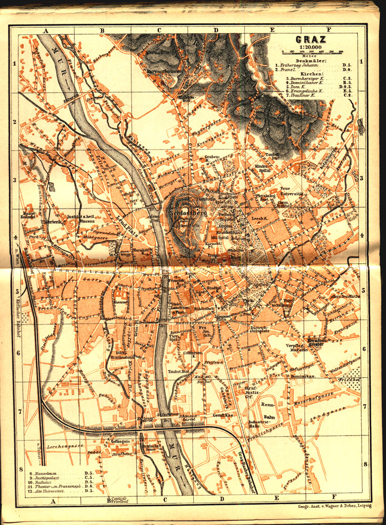 Mappa di Graz nel 1896, tratta da Allemagne du Sud et Autriche,