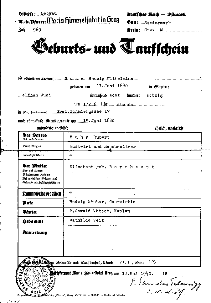 Comunque, 11 giugno 1980, a Graz, Stiria, Schmiedgasse 17. Da Muhr Rupert e
